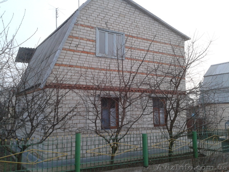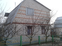 Двухэтажный кирпичный дом. Печное отопление. Три жилые комнаты, веранда, мансарда застекленная, балкон, погреб. Участок 4 сотки. Хозпостройки. Бетонированный двор с беседкой. Плодовый сад, виноградник, кустарник. Централизованная система полива с питьевой водой. Бассейн с питьевой водой. До речки 250м. Не далеко конечная остановка маршрутного транспорта. По улице газ. Вокруг живут соседи (круглый год).