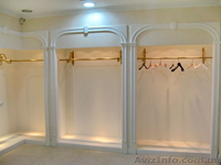 Площадь 94 м2 , два торговых зала (30м2+24м2) в двух уровнях , 2удобных примерочных , 2складских помещения оборудованные мебелью, кухня-комната персонала с мебелью и оборудованием .